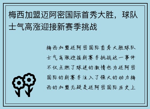 梅西正式加盟迈阿密国际队,意味着他结束了在巴塞罗那长达21年的辉煌职业生涯。这一决定不仅标志着梅西职业生涯的一个重大转折,也为全球足球迷带来了无尽的遐想与感慨。从梅西的成长故事到他为巴萨创造的传奇,再到他加盟迈阿密国际队的背景和影响,本文将从多个维度详细剖析梅西这一决定背后的深层次原因和影响。文章将分为四个方面进行阐述:梅西在巴萨的传奇地位,巴萨与梅西分道扬镳的背景,梅西选择迈阿密国际的动因以及梅...
